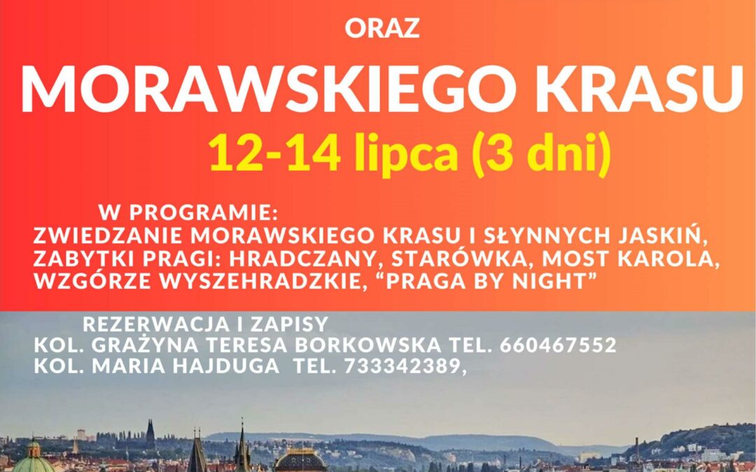 Szanowni Państwo! Koło Gospodyń Wiejskich Wielopole i Klub Seniora Wielogłowy organizują dla mieszkańców gminy Chełmiec 3-dniową wycieczkę do Pragi (w terminie 12-14 lipca 2024r). Program wycieczki przedstawia się następująco: